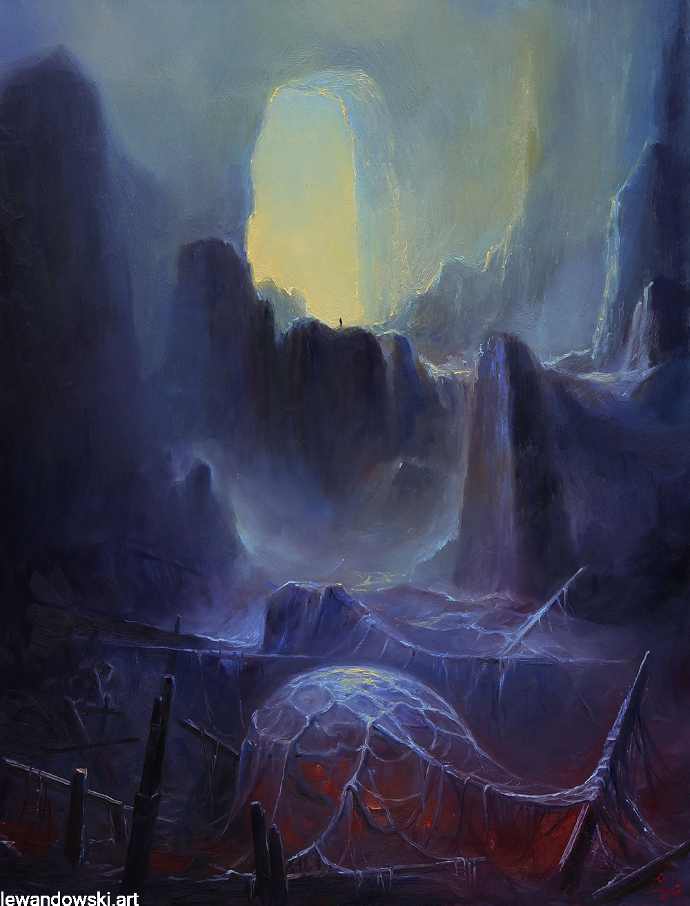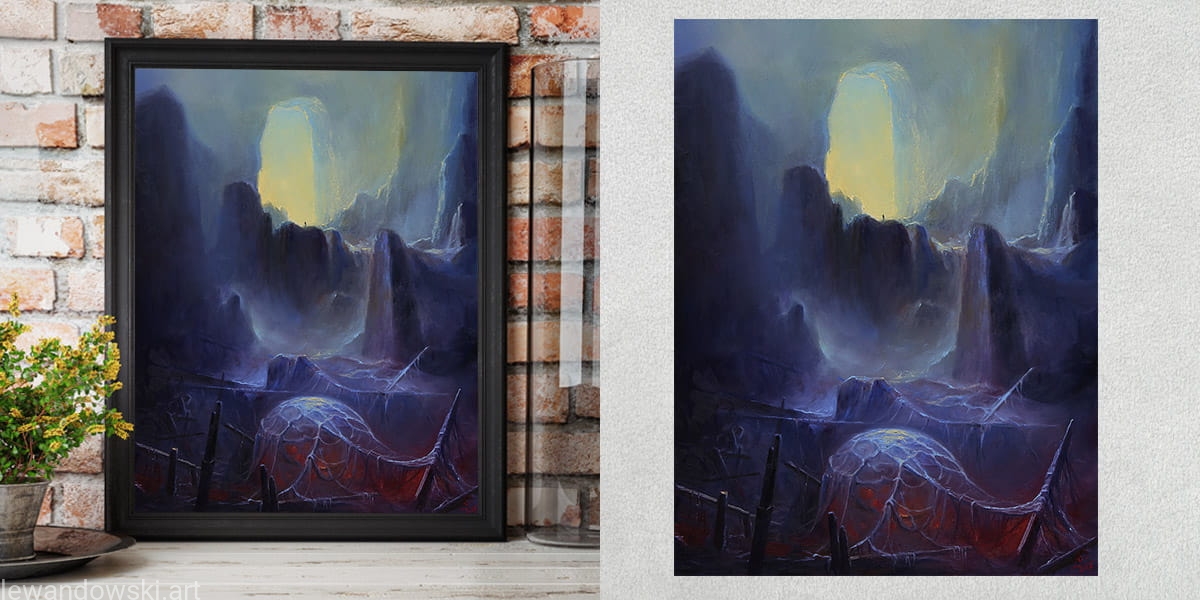 High-quality poster/print on paper based on surreal oil painting by Mariusz Lewandowski titled "DOOR OF SHEOL".