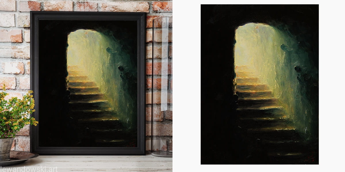 High-quality poster/print on paper based on surreal oil painting by Mariusz Lewandowski titled "FEARS".