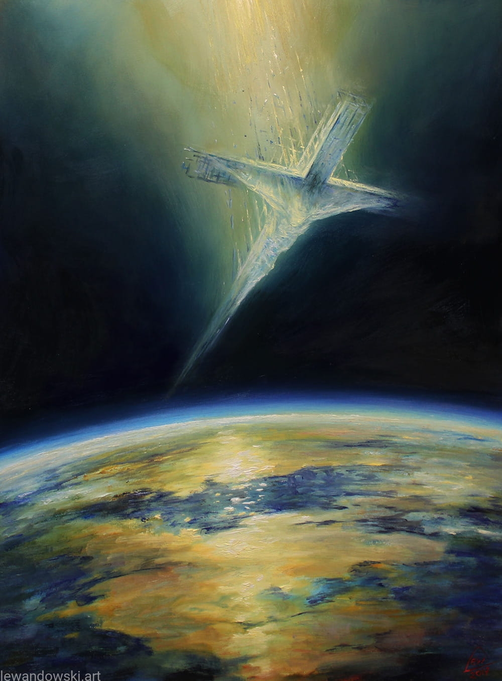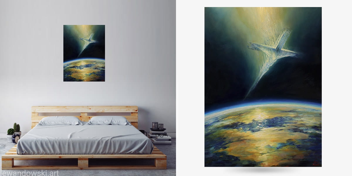 High-quality poster/print on paper based on surreal oil painting by Mariusz Lewandowski titled "SPACE CRUSADE".