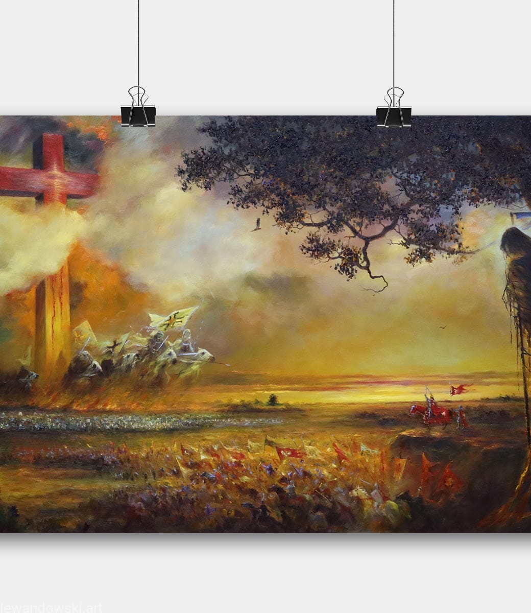 High-quality poster/print on paper based on surreal oil painting by Mariusz Lewandowski titled "THE BIGGEST BATTLE OF MEDIEVAL EUROPE".