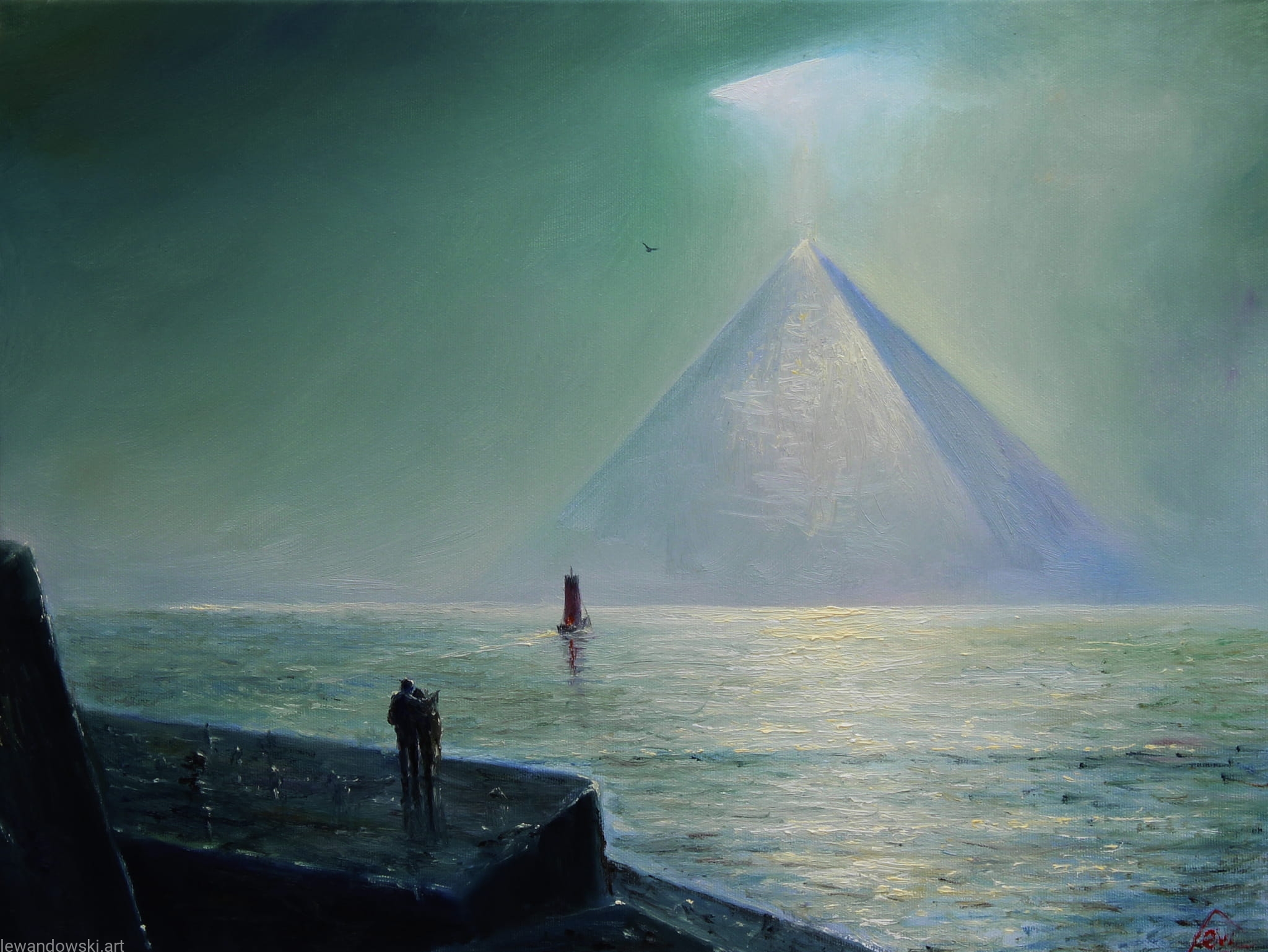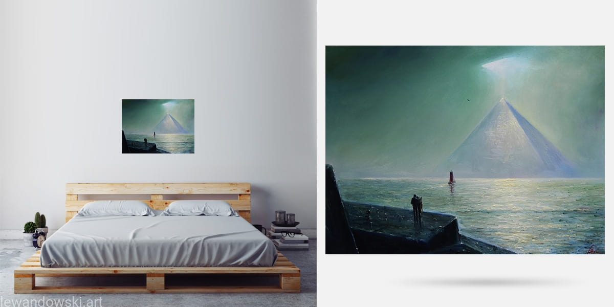 High-quality poster/print on paper based on surreal oil painting by Mariusz Lewandowski titled "WAITING FOR CHARON".